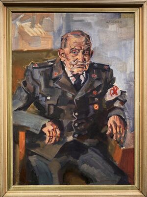 Das Gemälde Porträt eines Sanitäters mit roter Kreuzbinde des Schweizer Grafikers und Malers Hans Fischer (1909–1958) zeigt einen alten Sanitätssoldaten der Schweizer Armee, der auf einem Stuhl sitzend, in leicht gebückter Haltung, den Betrachter anschaut. Wenn das Porträit eine echte Person abbildet, dann ist ihr Name nicht bekannt. Das undatierte Bild wurde in Öl auf Leinwand gefertigt und befindet sich seit 2021 im Besitz des Wilhelm-Fabry-Museums in Hilden.